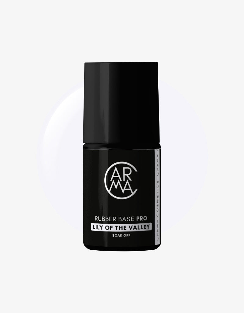 The CARMA COSMETICS Rubber Base PRO Lily Of the Valley is a ridge-filling white gel specifically designed for the natural nail plate. This self-leveling, ridge-filling base coat allows professionals to create volume during application. It not only provides structure to the nails but also smooths out any imperfections and fills in ridges.
