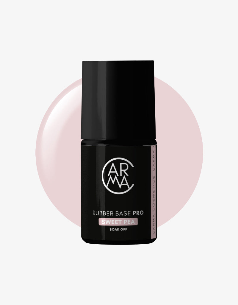 The CARMA COSMETICS Rubber Base Sweet Pea is a rich, filling soft pink nude gel specially formulated for the natural nail plate. This self-leveling, ridge-filling base coat enables professionals to create volume during application. It not only provides structure to the nails but also smooths out imperfections and fills in ridges.