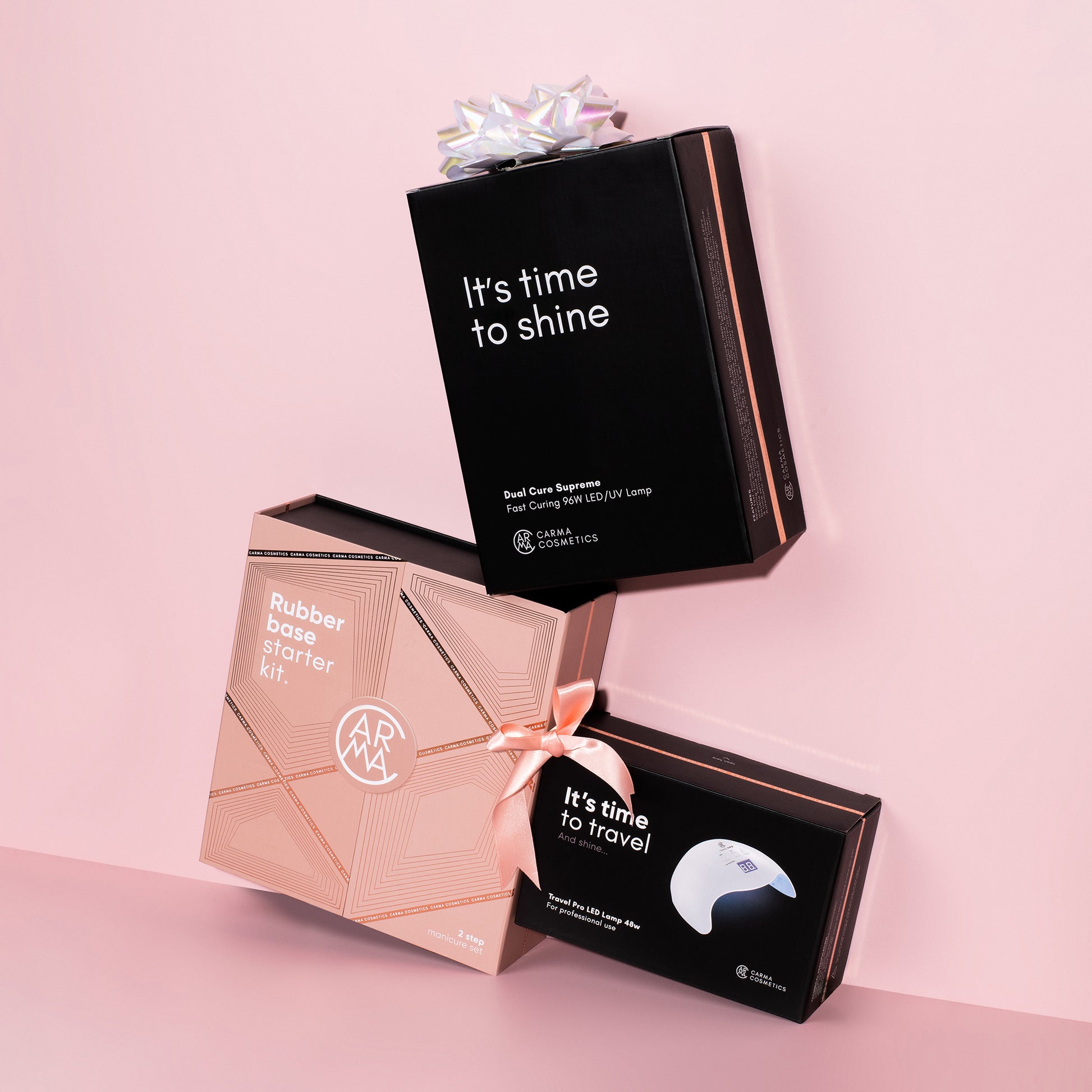 Breng je nagelverzorging naar een hoger niveau met de CARMA Cosmetics Rubber Base Starter Kit! Deze 2-step manicure set is neutraal chic en oogverblindend!